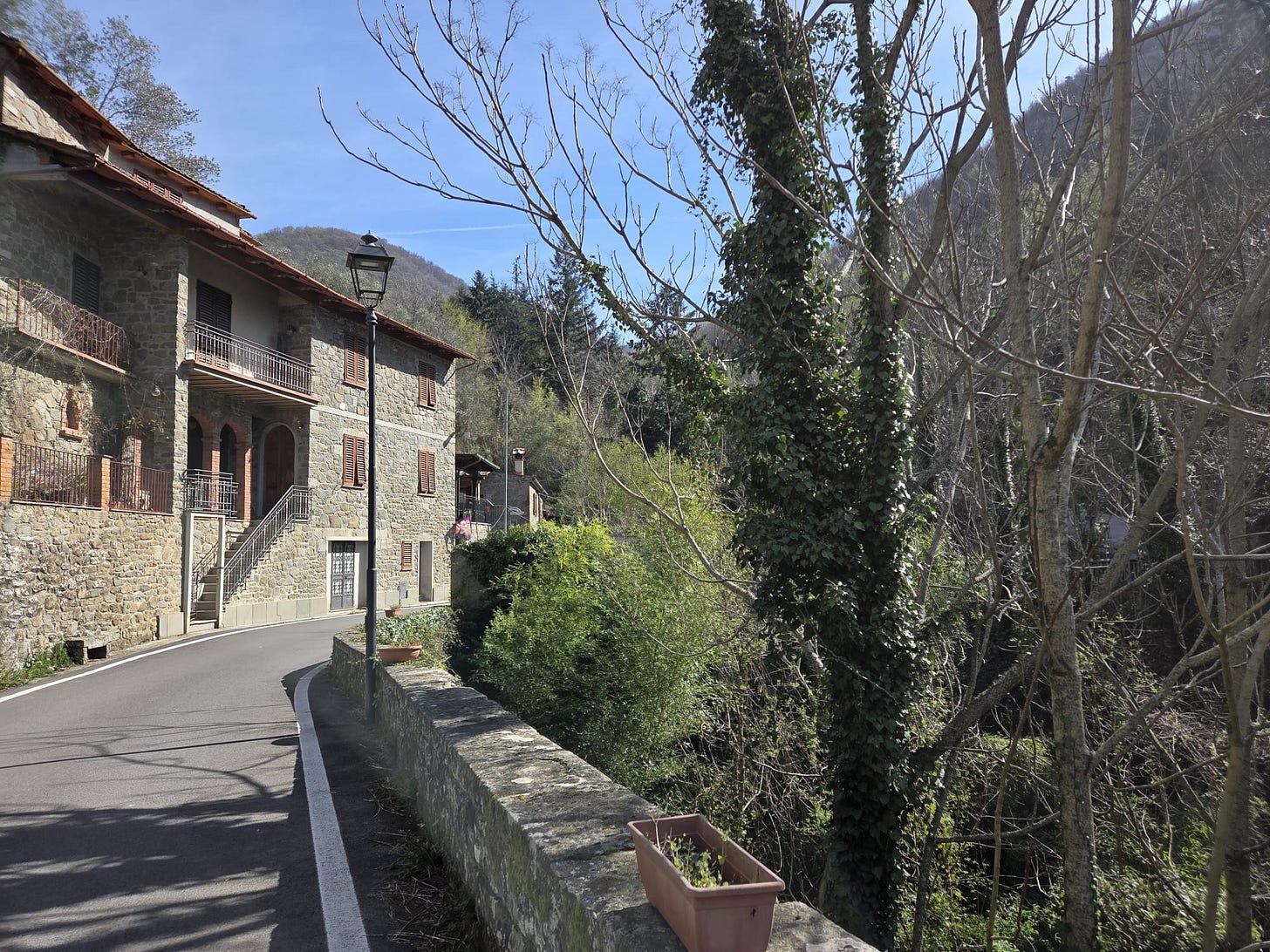 For Easter lunch, Jason had reserved a week ago at Sagonà, one of the small private restaurants that dot the hills around here, typically situated in a renovated and adapted large home in which a family may still reside. They source ingredients locally, and reservations are a must because they plan the meals very precisely, especially around a holiday menu. We first dined here eight years ago, when we were new to the region, because Jason’s friend Simone was managing an agriturismo just a stone’s throw away. Back then Victor and Eleanor were six and three, so we had engaged a sitter, a young woman we knew well and trusted very much, to watch them while we drove to Sagonà and dined. I remember the service in 2018 was touchingly sedate and the menu excellent.